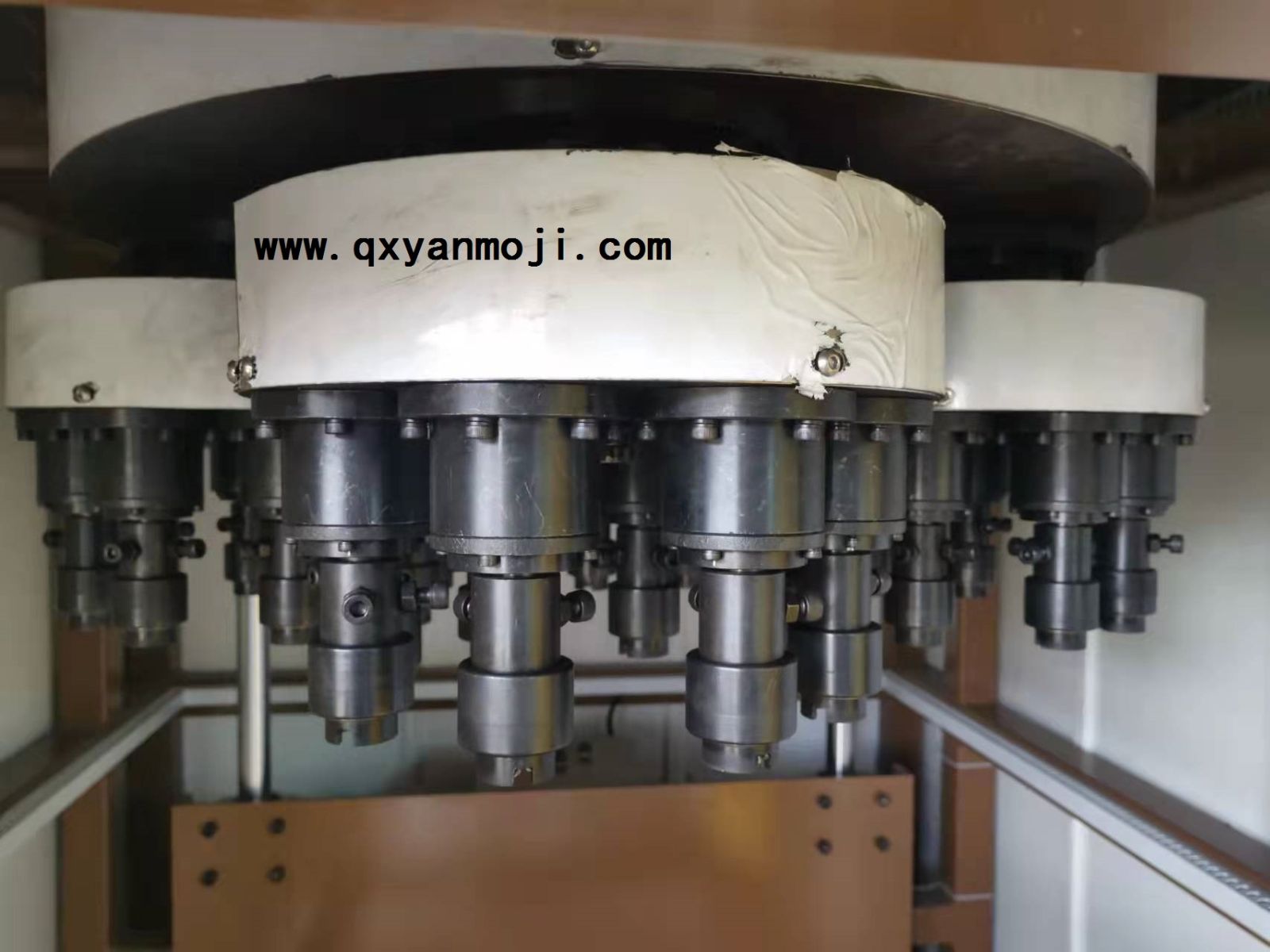 機臺結(jié)構(gòu)和運轉(zhuǎn)方式:機臺設計為減速大轉(zhuǎn)盤傳動4個小轉(zhuǎn)盤運行,4個小轉(zhuǎn)盤傳動24個夾頭,24個夾頭形成公轉(zhuǎn)、自轉(zhuǎn)、不規(guī)則物理運行方式,研磨拋光產(chǎn)品均可。